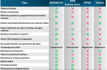 La calidad del PERT Borealis permite que la tubería Biovaltic sea totalmente compatible con conexiones de marcas reconocidas como Viega®, Uponor®, Watts®, entre otras.