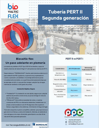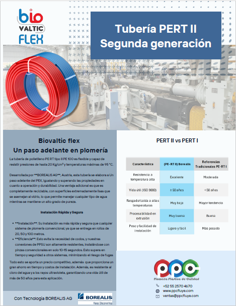 El tubo plástico PERT representa una mejora significativa respecto al PEX, ofreciendo una solución confiable y eficiente para diversas aplicaciones en la construcción y la industria; además, el tubo PERT es Reciclable y Termofusionable!